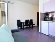 "Katarina 4 (SIB158)", 2-rums-lägenhet 40 m2, på bottenvåningen. Vardags-/matrum med 1 bäddsoffa för 2 personer och sat-TV (flatscreen TV), luftkonditionering. Utgång till terrassen. 1 rum med 1 dubbelsäng. Öppet kök (2 kokplattor - glaskeramikhäll, brödrost, vattenkokare, elektrisk kaffemaskin). Dusch/toalett. Terrass täckt. Terrassmöbler, vilstolar (1). Till förfogande: Internet (Trådlös LAN [WLAN] , gratis). Parkeringsplats (1 Bil). Notera: privat entré, privat entré.- Utrustning