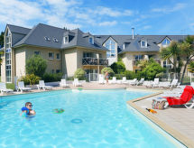 Vacker semesteranläggning "Ker Mael", med 3 våningar. 71 lägenheter i residenset. 2.5 km från centrumet av St. Briac, 7 km från centrumet av Dinard, 17 km från centrumet av St. Malo, 80 m från havet, gata att korsa. För gemensamt bruk: tomt 2 ha med planteringar och träd, pool uppvärmd, inhägnad (15 x 7 m, tillgång säsongsbunden: 22.Apr. - 16.Sep.). I anläggningen: reception, sällskapsrum, internetanslutning, Trådlös LAN [WLAN], bastu, gym, bordtennis, hiss, tvättmaskin (för gemensamt bruk, extra). Parkering på tomten. Affär 1 km, sandstrand 80 m. Golfbana (18 hål) 800 m. Notera: Bilden är bara ett exempel på ett hus. Hyresobjekten kann variera i boyta, planlösning, utrustning och möblering.Interior