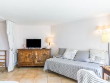 2-rums-lägenhet 55 m2, på bottenvåningen. Komfortabelt och vackert inredd: vardags-/matrum 20 m2 med TV. Utgång till trädgården, mot söder. 1 rum 25 m2 med 1 säng (90 cm, längd 190 cm), 1 fransk säng (140 cm, längd 190 cm), elektrisk fönsterlucka. Utgång till trädgården. Stort, öppet kök (4 kokplattor, ugn, mikrovågsugn, frys, elektrisk kaffemaskin). Dusch, sep. Toalett. Eluppvärmning. Trädgård. Terrassmöbler, utegrill. Utsikt på trädgården. Till förfogande: hög barnstol, barnsäng. Internet (Trådlös LAN [WLAN] , gratis). Parkeringsplats. Notera: rökfritt hus. 1 husdjur/hund tillåtet.- Utrustning