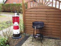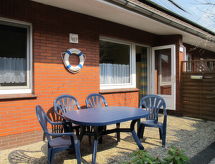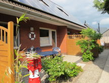 3-rums-lägenhet 45 m2, på bottenvåningen. Praktiskt och mysigt inredd: vardags-/matrum med sat-TV, radio och CD. Utgång till terrassen. 1 rum med 1 dubbelsäng. 1 rum med 2 sängar (90 cm, längd 200 cm). Kök (ugn, 4 kokplattor - glaskeramikhäll, brödrost, vattenkokare, elektrisk kaffemaskin). Dusch/toalett. Terrassmöbler. Till förfogande: tvättmaskin, hög barnstol, barnsäng. Internet (Trådlös LAN [WLAN] , gratis). Notera: rökfri lägenhet. Max 1 husdjur/hund tillåtet. Brandvarnare.- Utrustning