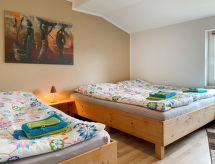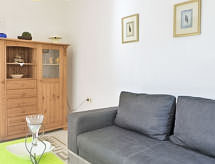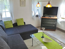 2-rums-lägenhet 50 m2, på bottenvåningen. Vackert och mysigt inredd: vardagsrum 13 m2 med sat-TV. 1 rum 13 m2 med 1 säng (90 cm, längd 200 cm), 1 dubbelsäng (2 x 90 cm, längd 200 cm). Med snedtak kök 8 m2 (4 kokplattor, ugn, mikrovågsugn, elektrisk kaffemaskin) med matbord. Dusch/toalett. Liten terrass. Terrassmöbler. Till förfogande: tvättmaskin, hög barnstol. Internet (Trådlös LAN [WLAN] , gratis). Notera: rökfri lägenhet. 2 husdjur/hundar tillåtna. Brandvarnare.- Utrustning