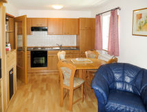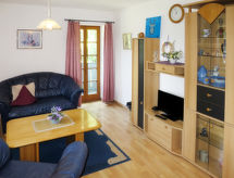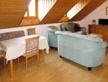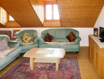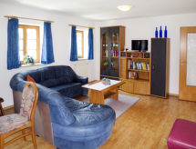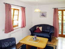 Hus "Kreuzbuche", fristående. 4 lägenheter i fastigheten. 7 km från centrumet av Viechtach, 87 km från centrumet av Passau, lugnt läge i en sluttning, direkt vid skogsbrynet. För privat bruk: tomt 5 ha, äng, pool (5 m i diameter, tillgång säsongsbunden: 15.Maj. - 15.Sep.). Utegrill, grillstuga, barnlekplats (rutschbana, gunga), parkering på tomten. Affär 5 km, stormarknad 7 km, restaurang 1 km, bageri 5 km. Vandringsleder från huset 10 m, bergbana 12 km, skidspår 2 km.Interior