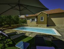 Bibinje 10 km från Zadar: Enfamiljshus "L&L". 1 km från centrumet av Bibinje, lugnt läge, 120 m från havet, 120 m från stranden. För privat bruk: tomt 900 m2 (inhägnad) med träd, pool kantig (8 x 3 m, 140 cm djup, tillgång säsongsbunden: 04.Maj. - 19.Okt.) med innertrappor. Utedusch. I huset: internetanslutning, tvättmaskin. Parkering vid huset på tomten, privat garage vid huset. Affär 200 m, restaurang 1.5 km, grusstrand 120 m. Tennis 2 km. Tonårsgrupper endast på förfrågan. Lugnt och tyst område. Tystnad och gott uppförande förväntas. Det är inte tillåtet att organisera en fest.Interior
