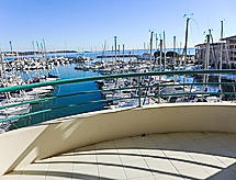 2-rums-lägenhet 42 m2 på 3. våningen. Praktiskt och vackert inredd: vardags-/matrum med 2 sängar (80 cm, längd 190 cm), TV (flatscreen TV). Utgång till terrassen. 1 rum med 1 fransk säng (160 cm). Kokvrå (4 kokplattor, miniugn, diskmaskin, brödrost, vattenkokare, mikrovågsugn, frys, elektrisk kaffemaskin). Badkar, sep. Toalett. Terrass 14 m2. Terrassmöbler. Vacker utsikt på havet och hamnen. Till förfogande: strykjärn. Internet (Trådlös LAN [WLAN] , extra). Parkeringsplats nr 7121 (täckt), höjd 190 cm, bredd 220 cm. Notera: parkeringsplats endast för små bilar. Brandvarnare.- Kännetecken för boendet