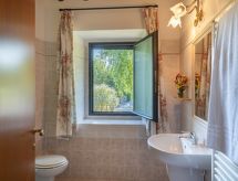 8-rums-hus 360 m2 med 2 våningar, på bottenvåningen. Mycket komfortabelt och smakfullt inrett: stort vardags-/matrum med öppen spis, sat-TV och flatscreen TV. 1 dubbelrum. Kök (5 kokplattor, ugn, diskmaskin, mikrovågsugn, frys). Dusch/bidé/toalett, sep. Toalett. Övre våning: 1 dubbelrum med dusch/bidé/toalett. 1 rum med 2 sängar och dusch/bidé/toalett. 1 dubbelrum. 1 rum med 2 sängar. 1 rum med 2 sängar. 1 dubbelrum. 2 duschar/bidéer/toaletter. Terrassmöbler, utegrill. Panoramautsikt på landskapet. Till förfogande: tvättmaskin, telefon (extra), hög barnstol. Internet (Trådlös LAN [WLAN] , gratis). 1 husdjur/hund tillåtet.- Utrustning