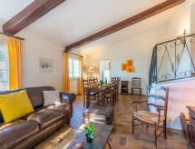 Enfamiljshus "La Bartavelle", byggnadsår 1977. Utanför orten, 3.5 km från centrumet av Les Issambres, lugnt, soligt, upphöjt läge på en kulle, 3.5 km från havet, 3.5 km från stranden. För privat bruk: tomt i naturtillstånd 785 m2 (inhägnad), planteringar och träd, parkering. Affär 3 km, stormarknad 3 km, köpcentrum 8 km, restaurang 3 km, järnvägsstation "Saint-Raphael TGV" 16 km, sandstrand 4 km, bad med varma källor "Thalasso Les Issambres" 4 km. Sporthamn 4 km, golfbana (18 hål) 10 km. Närbelägna sevärdheter: Navette/Shuttle Boat St Tropez 20min 4 km, Aqualand waterpark 12 km, Saint-Tropez/Ramatuelle 23 km, Port-Grimaud 18 km, Sainte-Maxime 10 km, Gorges du Verdon 95 km. Vandringsområden Massif des Maures 15 km, Massif de l'Esterel 30 km. Notera: fordon rekommenderas. Nyckelöverlämningen sker på kontoret Interhome i Sainte-Maxime. Flygplats 70 km från huset.Interior