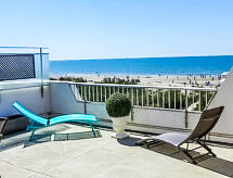 Residens "La Calypso", med 4 våningar. I ortsdelen La Motte du Couchant, 1 km, 50 m från havet, 40 m från stranden, direkt tillgång till stranden. För gemensamt bruk: pool (tillgång säsongsbunden: 22.Jun. - 30.Aug. poolen är öppen under följande tider: mellan kl 15:00-20:00). Köpcentrum, restaurang 150 m, busshållplats 400 m, järnvägsstation "Montpellier" 25 km, sandstrand 20 m, simhall 3 km, bad med varma källor "Thalasso Spa" 2.5 km. Sporthamn 900 m, golfbana (18 hål) 3.5 km, seglarskola 500 m, tennis 3 km, ridstall 2 km. Närbelägna sevärdheter: Le Seaquarium du Grau Du Roi 10 km, Les Remparts d'Aigues Mortes 12 km, Les Saintes Maries de la Mer 40 km. Notera: Hiss saknas. Flygplats i närheten 20 km från huset. I denna semesteranläggning finns det fler bostäder att hyra.Interior