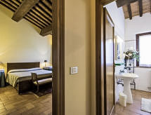 Lantgods "La Casetta". 5 lägenheter i fastigheten. 10 km från centrumet av Casciana Terme, 49 km från centrumet av Volterra, 57 km från centrumet av San Gimignano, avskilt, lugnt, soligt läge på en kulle, 20 km från havet, i det gröna. För gemensamt bruk: trädgård 1 ha (inhägnad), pool (12 x 6 m, 110 - 180 cm djup, tillgång säsongsbunden: 06.Maj. - 23.Sep.). Utedusch, bordtennis, pergola, trädgårdsmöbler, utegrill, barnlekplats (rutschbana, gunga). I huset: internetanslutning, tvättmaskin (för gemensamt bruk), Uppvärmning betalas lokalt, uppvärmning endast tillgängligt från 01.11. till 07.04.. Flygplatstransfer (extra). Tillfart ända fram till till huset (100 m naturväg). Parkering på tomten. Laddstation för elbil. Affär 3 km, livsmedelsaffär 3 km, sandstrand 22 km, strand vid klippor 22 km. Golfbana (18 hål) 50 km. Närbelägna sevärdheter: Castellina Marittima 18 km, Lajatico 27 km, Bolgheri 46 km. Lokal försäljning av lantgårdsprodukter. Notera: Bilden är bara ett exempel på ett hus. I denna semesteranläggning finns det fler bostäder att hyra.Interior
