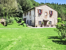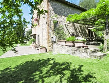 10-rums-gårdshus 280 m2 med 2 våningar. Komfortabelt och rustikt inrett: vardagsrum med öppen spis och TV. Utgång till trädgården. Matrum. Utgång till trädgården. 1 rum med 2 sängar. Vardags-/matrum med köksblock. Utgång till trädgården, till loggian. Vardagsrum med öppen spis och TV. Utgång till trädgården. Stort kök (4 kokplattor, ugn, diskmaskin, mikrovågsugn, frys) med matbord. Utgång till trädgården, pergola. Dusch/bidé/toalett. Övre våning: 1 rum med 2 sängar. 3 dubbelrum. Öppet mellanplan med 1 dubbelsäng. 1 rum med 2 sängar. 2 badkar/bidéer/toaletter. Gasuppvärmning. Uppvärmning endast tillgängligt från 01.11. till 15.04. Mycket vacker utsikt på dalen och landskapet. Till förfogande: tvättmaskin, myggnät, hårtork. Internet (Trådlös LAN [WLAN] , gratis).- Aktiviteter i närheten