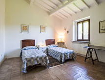 Med sin belägenhet på gränsen mellan Umbrien och Lazio nära de viktigaste kommunikationsvägarna, har gästerna möjlighet att nå och besöka de viktigaste sevärdheterna i centrala Italien. Lantgård "Casale Del Re", 200 meter över havsytan, fristående, omgiven av träd och fält. Hyresobjekt bestående av huvud- och sidobyggnad 16 km från centrumet av Narni, avskilt läge på en kulle. För gemensamt bruk: tomt 4 ha. För privat bruk: trädgård 500 m2 (inte inhängnad), pool (4 x 12 m, 140 - 140 cm djup, tillgång säsongsbunden: 30.Maj. - 15.Okt.). Dusch/toalett i poolområdet, pergola, trädgårdsmöbler, utegrill. Uppvärmning endast tillgängligt från 01.11. till 15.04.. Tillfart (1 km naturväg). Parkering vid huset. Stormarknad 8 km, restaurang 5 km, bar 5 km, järnvägsstation "Orte Scalo" 8 km, badsjö "Bolsena" 50 km. Närbelägna sevärdheter: Orte Sotterranea 8 km, Narni Sotterranea 18 km, Terni 30 km, Viterbo 36 m, Cascata Delle Marmore 40 km, Orvieto 49 km. Notera: fordon rekommenderas. Ägaren accepterar inga ungdomsgrupper. Från station Orte Scalo, 8 km bort, är det möjligt att ta tåget som på 40 minuter tar dig till Roms centrum. Observera: 100 meter från huset finns det en annan byggnad som förblir tom under vistelsen.Interior