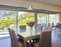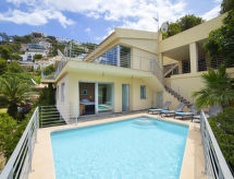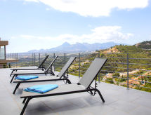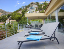 "La Estrella", 5-rums-villa 276 m2 med 2 våningar. Objekt passande för 6 vuxna + 2 barn. Rymlig och ljus, vackert och modernt inredd: öppet stort vardags-/matrum med matbord, sat-TV, digital-TV, luftkonditionering och varmluftsuppvärmning. Öppet kök (ugn, diskmaskin, 4 kokplattor - glaskeramikhäll, brödrost, vattenkokare, mikrovågsugn, frys, elektrisk kaffemaskin) med luftkonditionering och varmluftsuppvärmning. Sep. Toalett. Uppvärmning endast tillgängligt från 01.11. till 30.04, Solkraft. Nedre våning: 1 rum med 1 fransk säng, badkar/dusch/bidé/toalett, luftkonditionering och varmluftsuppvärmning. Utgång till terrassen, till swimmingpoolen. 2 rum, till varje rum hör, 1 dubbelsäng, luftkonditionering och varmluftsuppvärmning. 1 rum med 1 x 2 våningssängar, luftkonditionering och varmluftsuppvärmning. 2 duschar/bidéer/toaletter, dubbelt handfat. 2 stora terrasser. Terrassmöbler, utegrill (flyttbar). Vacker utsikt på orten och orten. Till förfogande: tvättmaskin, torktumlare, strykjärn, hög barnstol, barnsäng för barn under 2 år, hårtork. Internet (Trådlös LAN [WLAN] , gratis). Parkeringsplats (2 Bilar). Lämpligt för barnfamiljer. VT-488094-A- Aktiviteter i närheten