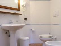 "La Fenice - 08 pax", 6-rums-ena hälften av ett parhus 200 m2 med 2 våningar, på bottenvåningen. Öppet vardagsrum med öppen spis, sat-TV och stereoanläggning. Utgång till verandan. Öppet matrum. 1 rum med 2 sängar. Öppet kök (4 kokplattor, ugn, diskmaskin, frys). Dusch/bidé/toalett. Övre våning: 1 rum med 2 sängar. 1 dubbelrum med dusch/bidé/toalett. 1 dubbelrum med dusch/bidé/toalett. Dusch/bidé/toalett. Terrassmöbler. Till förfogande: tvättmaskin. Internet (Trådlös LAN [WLAN] , extra). 1 husdjur/hund tillåtet.- Utrustning