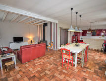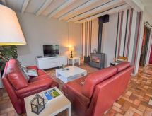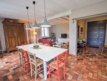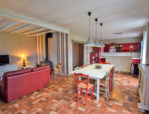 "La Fontarelle", 4-rums-hus 120 m2. Rymlig och ljus, komfortabelt och vackert inrett: liten ingång. Vardags-/matrum med matbord och TV (flatscreen TV), vedugn. Utgång till balkongen. 1 rum med 1 fransk säng (160 cm, längd 200 cm). 1 rum med 1 fransk säng (140 cm, längd 190 cm). 1 rum med 2 sängar (90 cm, längd 190 cm). Öppet kök (ugn, diskmaskin, 4 gasflammor, brödrost, vattenkokare, mikrovågsugn, frys, elektrisk kaffemaskin) med bar. Dusch, sep. Toalett, dubbelt handfat. Balkong, terrass täckt. Terrassmöbler, utegrill, vilstolar (4). Vacker utsikt på landskapet. Till förfogande: tvättmaskin, strykjärn, hög barnstol, barnsäng, hårtork, ved (extra). Internet (Trådlös LAN [WLAN] , gratis). Notera: rökfritt hus. Max 1 husdjur/hund tillåtet. Brandvarnare.- Utrustning