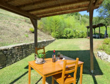 2-rums-lägenhet 48 m2, på bottenvåningen. Rustikt inredd: vardags-/sovrum med 1 bäddsoffa för 2 personer, matbord, sat-TV och internationella TV-kanaler. Utgång till terrassen. 1 rum med 1 fransk säng (160 cm). Utgång till trädgården. Öppet kök (4 kokplattor, diskmaskin, mikrovågsugn, elektrisk kaffemaskin). Dusch/toalett. Gasuppvärmning. Naturstensgolv. Trädgårdssittplats täckt, trädgård 80 m2. Terrassmöbler. Panoramautsikt. Till förfogande: barnsäng för barn under 2 år (extra). Parkeringsplats (1 Bil) vid huset. Notera: rökfri lägenhet. 1 husdjur/hund tillåtet. Privat entré, privat entré.- Utrustning