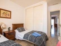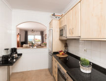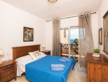 "La joya", 3-rums-lägenhet 80 m2 på 2. våningen, sydvästläge. Komfortabelt inredd: vardags-/matrum med 1 bäddsoffa, matbord, sat-TV, DVD och luftkonditionering. Utgång till terrassen. 1 rum med 2 sängar (90 cm). 1 rum med 1 fransk säng (135 cm, längd 190 cm), badkar/bidé/toalett. Utgång till terrassen. Kök (diskmaskin, 4 kokplattor - glaskeramikhäll, mikrovågsugn, elektrisk kaffemaskin). Dusch/toalett. Luftkonditionering, varmluftsuppvärmning. Terrass 20 m2, sydvästläge. Terrassmöbler, utegrill. Utsikt på havet. Till förfogande: tvättmaskin, hårtork. Internet (Trådlös LAN [WLAN] , gratis). Parkeringsplats vid huset. Max 1 husdjur/hund tillåtet. VFT/MA/19679- Kännetecken för boendet
