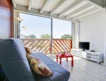 Gujan-Mestras 10 km från Arcachon: Residens "La Passerelle". Utmärkt läge: mitt i centrum men ändå lugnt, 3.7 km från havet, 3.7 km från stranden. Parkering (begränsat antal). Livsmedelsaffär 750 m, stormarknad 2.6 km, köpcentrum 7.3 km, restaurang 700 m, bar 2.8 km, bageri, café 400 m, järnvägsstation "Gujan-Mestras" 1 km, park "Chêneraie" 3.8 km, simhall 5.6 km. Sporthamn 500 m, golfbana (18 hål) 7.9 km, cykelled 400 m. Närbelägna sevärdheter: Aqualand 6.1 km, Accrobranche 6.2 km, Bowling 5.7 km, Casino 4 km, Dune du Pyla 15.9 km, ArcaJetMarine 8.9 km. Välkända sjöar nås enkelt: Lac de la Magdeleine 4 km, Lac de Cazaux 17.1 km. Nyckelöverlämningen sker på kontoret Interhome i Arcachon, 10 km.Interior
