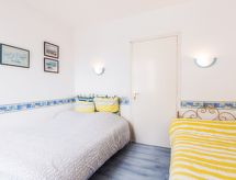 3-rums-lägenhet 65 m2 på 1. våningen, norrläge. Vackert inredd: vardags-/matrum med TV (flatscreen TV). 1 rum med 1 säng (90 cm, längd 190 cm), 1 fransk säng (140 cm, längd 190 cm). 1 rum med 1 fransk säng (140 cm, längd 190 cm). Öppet kök (4 kokplattor, ugn, diskmaskin, brödrost, mikrovågsugn, elektrisk kaffemaskin). Dusch, sep. Toalett. Eluppvärmning. Vacker utsikt på havet. Till förfogande: Internet (Trådlös LAN [WLAN] , extra). Notera: rökfri lägenhet. Brandvarnare, ingen hiss. Annonsering av en privatperson enligt artikel 155, IV, CGI.- Kännetecken för boendet