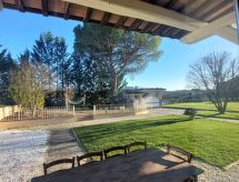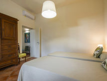 "Quercitella", 4-rums-hus 120 m2, på bottenvåningen. Objekt passande för 8 vuxna + 2 barn. Rymlig och ljus, fullständigt renoverat år 2021, komfortabelt och modernt inrett: stort vardags-/matrum med matbord och sat-TV (flatscreen TV). 1 rum med 3 sängar (80 cm). 2 dubbelrum. 1 rum med 1 säng (80 cm), 1 dubbelsäng. Stort, öppet kök (ugn, diskmaskin, 5 Induktionshäll, brödrost, vattenkokare, elektrisk kaffemaskin, Kapslar till kaffemaskin (Nespresso) extra). 2 duschar/bidéer/toaletter. Uppvärmning, luftkonditionering (extra). Parkettgolv, naturstensgolv. Trädgårdssittplats. Terrassmöbler, utegrill, vilstolar, förråd. Utsikt på landskapet. Till förfogande: tvättmaskin, strykjärn, myggnät, hög barnstol, barnsäng för barn under 2 år, hårtork. Internet (Trådlös LAN [WLAN] , gratis). Parkeringsplats (inhägnad, 4 Bilar). Notera: lämpligt för barnfamiljer. Rökfri lägenhet. 1 husdjur/hund tillåtet. Privat entré, privat entré. Inga obligatoriska extra avgifter betalas på plats förutom lokal skatt. Sängkläder, handdukar, slutstädning och energikostnader är inkluderade.- Utrustning