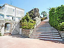 "Pithecusa", 3-rums-lägenhet 80 m2 på 1. våningen. Ljus, praktiskt och komfortabelt inredd: öppet vardags-/matrum med 1 säng, matbord och kabel-TV (flatscreen TV), luftkonditionering och varmluftsuppvärmning. Utgång till balkongen. 1 dubbelrum med panoramafönster. 1 rum med 1 x 2 våningssängar. Litet kök (4 kokplattor, ugn, frys). 2 duschar/bidéer/toaletter. Liten balkong 5 m2. Balkongmöbler. Mycket vacker utsikt på havet och orten. Till förfogande: tvättmaskin, hårtork. Internet (Trådlös LAN [WLAN] , gratis). Lämpligt för barnfamiljer.- Utrustning