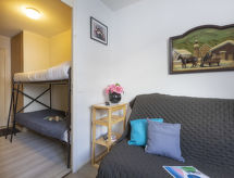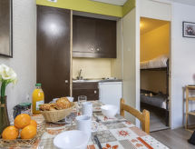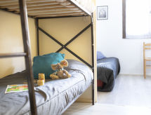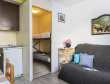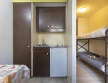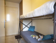 "Roche Blanche 97", 1-rums-lägenhet 18 m2 på 1. våningen, norrläge. Vardags-/matrum med 1 bäddsoffa för 2 personer (140 cm, längd 190 cm), TV och eluppvärmning. Ingång med 1 x 2 våningssängar (80 cm, längd 190 cm). Kokvrå (2 kokplattor, vattenkokare, mikrovågsugn, elektrisk kaffemaskin). Badkar/toalett. Till förfogande: Internet (Trådlös LAN [WLAN] , extra). Notera: max 1 husdjur/hund tillåtet. Brandvarnare.- Kännetecken för boendet