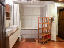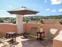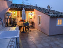 "La Roq", 4-rums-radhus 150 m2 med 4 våningar. Renoverat år 2009, komfortabelt och rustikt inrett: 1 rum med 2 sängar (90 cm, längd 200 cm), sep. toalett och dusch. Övre våning: 1 rum med 1 fransk säng (160 cm, längd 200 cm), badkar, sep. toalett och dubbelt handfat. 2:a våningen vardags-/matrum med 1 bäddsoffa (160 cm, längd 200 cm), TV och eluppvärmning. Kök (ugn, diskmaskin, 4 kokplattor - glaskeramikhäll, brödrost, vattenkokare, elektrisk kaffemaskin) med matbord. 3:e våningen salong med 1 bäddsoffa (120 cm, längd 185 cm). Utgång till terrassen. Stor terrass 40 m2. Terrassmöbler. Till förfogande: tvättmaskin, strykjärn, barnsäng. Internet (Trådlös LAN [WLAN] , gratis). Notera: rökfritt hus. Brandvarnare. 831070007173W- Kännetecken för boendet