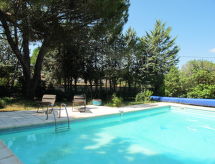 Vackert, mysigt hus "La Rouveyrolle". 1 km från centrumet av Tresques, 6 km från centrumet av Bagnols-sur-Cèze, 30 km från centrumet av Orange, i ett bostadsområde, i det gröna. För privat bruk: tomt 1'400 m2 (inhägnad) med planteringar och träd, naturtomt, pool (10 x 5 m, 110 - 200 cm djup, tillgång säsongsbunden: 01.Maj. - 30.Sep.) med övertäckning för poolen. Terrass. Trappor (3 trappsteg) till huset. Parkering (för 3 bilar) på tomten. Affär 1 km, stormarknad 6 km. Notera: huvudgata 50 m från huset.Interior