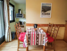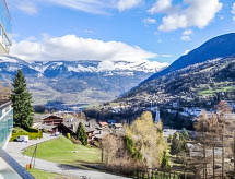 "La royale", 1-rums-studio 29 m2 på 3. våningen. Vackert inredd: vardags-/matrum med 1 bäddsoffa för 2 personer (140 cm), TV. Utgång till balkongen. Alkov med 1 x 2 våningssängar (90 cm). Öppet kök (2 kokplattor, miniugn, brödrost, vattenkokare, mikrovågsugn, elektrisk kaffemaskin, raclettegrill). Badkar/toalett. Eluppvärmning. Balkong. Vacker utsikt på bergen och orten. Till förfogande: Internet (Trådlös LAN [WLAN] , extra). Parkeringsplats. Notera: rökfri lägenhet. TV bara FR. Brandvarnare.- Kännetecken för boendet