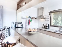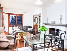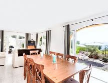 "La Teulada", 5-rums-hus med 2 våningar. Praktiskt och komfortabelt inrett: vardags-/matrum med sat-TV och internationella TV-kanaler. 1 rum med 1 fransk säng och luftkonditionering. Badkar/toalett. Ingen uppvärmningsmöjlighet. Övre våning: vardags-/matrum med sat-TV och luftkonditionering. 1 rum med 2 sängar (90 cm, längd 190 cm) med 1 fransk säng (140 cm, längd 190 cm), luftkonditionering. Öppet kök (4 kokplattor, ugn, diskmaskin, brödrost, vattenkokare, mikrovågsugn, elektrisk kaffemaskin). Badkar/bidé/toalett. Terrassmöbler, utegrill, vilstolar. Mycket vacker utsikt på bergen och landskapet. Till förfogande: tvättmaskin, hög barnstol, barnsäng. Internet (Trådlös LAN [WLAN] , gratis). Notera: rökfritt hus. Ingen intern dörr mellan våningarna. HUTG-043510- Utrustning