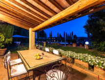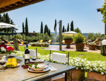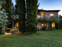 "La Torre + Fienile + Casa Prato", 16-rums-villa 900 m2 med 2 våningar. Rymlig, mycket komfortabelt och smakfullt inredd: stor ingång. Stor salong med öppen spis. Utgång till trädgården. Stort matrum. Stort vardagsrum. Utgång till trädgården, till swimmingpoolen. Vardagsrum. Utgång till trädgården. 1 rum med 3 sängar (100 cm, längd 200 cm), badkar/dusch/bidé/toalett. Utgång till trädgårdssittplatsen. Stort, öppet kök (ugn, diskmaskin, brödrost, vattenkokare, mikrovågsugn, frys, elektrisk kaffemaskin) med öppen spis och matbord. Utgång till trädgården, till swimmingpoolen. 2 duschar/bidéer/toaletter. Övre våning: vardagsrum med TV (flatscreen TV). 2 stor dubbelrum, till varje rum hör, badkar/dusch/bidé/toalett och dubbelt handfat. 1 rum med 2 sängar (100 cm, längd 200 cm), dusch/bidé/toalett. 2 rum, till varje rum hör 1 säng (100 cm, längd 200 cm), 1 dubbelsäng och dusch/bidé/toalett. 1 dubbelrum med dusch/bidé/toalett. Utgång till balkongen. 1 dubbelrum med dusch/bidé/toalett. 1 rum med 1 fransk säng (150 cm), dusch/bidé/toalett. Naturstensgolv. Bekväm inredning i lantlig stil. Terrass, trädgårdssittplats. Terrassmöbler, utegrill, vilstolar, förråd. Mycket vacker panoramautsikt. Till förfogande: tvättmaskin, torktumlare, kassaskåp, strykjärn, myggnät, hög barnstol, barnsäng för barn under 2 år, hårtork, ved (extra). Internet (Trådlös LAN [WLAN] , gratis). Parkeringsplats (10 Bilar) vid huset. Laddstation för elbil. Notera: rökfri lägenhet. 2 husdjur/hundar tillåtna. Ingen intern anslutningsdörr mellan de separata bostädarna. Poolen som nämns i beskrivningen är för eget bruk.- Kännetecken för boendet