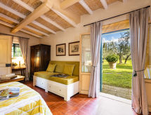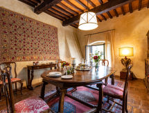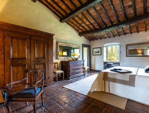 Mycket vacker, komfortabel villa "La Torre", från 1100-talet, omgiven av träd och vingårdar. 3 hus i residenset. Hyresobjekt bestående av huvud- och sidobyggnad 4 km från centrumet av Figline Valdarno, 7 km från centrumet av Incisa Valdarno, 35 km från centrumet av FIrenze, avskilt, soligt läge villaområde, i det gröna. För privat bruk: park (inhägnad), stor, välskött trädgård 5 ha med gräsmatta och blommor, naturlig damm, pool (9 x 18 m, 120 - 240 cm djup, tillgång säsongsbunden: 01.Apr. - 15.Okt.). Utedusch, sittplats, berså, pergola, terrass, trädgårdsmöbler, utegrill, Underhållning av poolen av ägaren/trädgårdsmästaren. I huset: bubbelbad (allt inkl.), biljard, cykeluthyrning. Byte av sängkläder 1 gånger i veckan. Byte av handdukar 1 gånger i veckan. Städning 2 gånger i veckan (inkl.). Hushållshjälp möjligt (extra). Frukost och halvpension möjligt (extra). Inköpsservice före ankomst. Förråd finns. Flygplatstransfer. Parkering (för 10 bilar, täckt) på tomten. Affär 3 km, livsmedelsaffär 3 km, stormarknad 3 km, restaurang 3 km, bageri 3 km, cykeluthyrning 4 km, busshållplats 300 m, järnvägsstation "incisa Valdarno" 7 km. Golfbana (18 hål) 23 km, tennis 4 km, tennishall 4 km, ridstall 4 km, vandringsleder från huset 100 m. Närbelägna sevärdheter: Greve in Chianti 17 km, Arezzo 50 km, San Gimignano 62 km, Siena 65 km. Notera: babyutrustning (inkl.). Tonårsgrupper endast på förfrågan. Passande för event. På förfrågan: flygplatstransfer till semesterobjektet. Residens med elektriska grindar. Ägaren bor på samma tomt. Ägaren har en hund. Alla hus/lägenheter är individuellt inredda.Interior