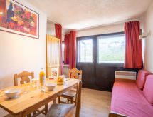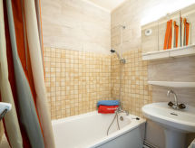 "Vanoise 152", 2-rums-lägenhet 27 m2 på 1. våningen, sydläge. Vardags-/matrum. 1 rum med draperi med 1 utdragbar säng (2 pers. 2 x 80 cm, längd 190 cm), TV (flatscreen TV), elektriskt värmeelement. Alkov med 1 x 2 våningssängar (80 cm, längd 190 cm). Kokvrå (2 kokplattor, ugn, diskmaskin, mikrovågsugn, elektrisk kaffemaskin, raclettegrill). Badkar, sep. Toalett. Liten balkong 2 m2, sydläge. Till förfogande: Internet (Trådlös LAN [WLAN] , extra). Notera: brandvarnare.- Kännetecken för boendet
