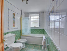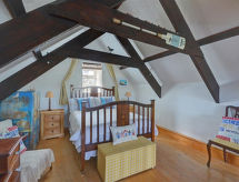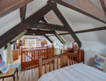 3-rums-stuga med 2 våningar. Komfortabelt och smakfullt: vardagsrum med TV (flatscreen TV), DVD. 1 rum med 1 dubbelsäng och TV (flatscreen TV). Kök (4 kokplattor, ugn, diskmaskin, mikrovågsugn, frys) med matbord. Utgång till trädgårdssittplatsen. Bidé, badkar/dusch/toalett. Övre våning: 1 stort rum med snedtak med 2 dubbelsängar och TV. Uppvärmning. Trädgård. Terrassmöbler, utegrill. Till förfogande: tvättmaskin, hög barnstol, barnsäng för barn under 2 år. Parkeringsplats. Notera: rökfritt hus. TV bara EN.- Kännetecken för boendet