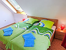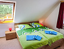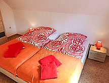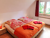 3-rums-lägenhet 80 m2, på övervåningen. Sluttande tak: vardagsrum 14 m2 med sat-TV (flatscreen TV). 2 rum 15 m2, till varje rum hör, 1 dubbelsäng (2 x 90 cm, längd 200 cm). Kök (ugn, 4 kokplattor - glaskeramikhäll, elektrisk kaffemaskin) med matbord. Dusch/toalett. Terrass. Terrassmöbler, utegrill. Vacker utsikt på landskapet. Till förfogande: hög barnstol (extra), hårtork. Notera: rökfri lägenhet.- Utrustning