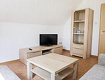 Halbemond 6 km från Hage: 2-familjshus "Landblick", fristående, omgiven av ängar och fält. Lugnt läge, 12 km från havet, 12 km från stranden. För gemensamt bruk: stor trädgård med gräsmatta. Barnlekplats (gunga). I huset: centralvärme. Parkering vid huset. Affär 5 km, stormarknad 5 km, restaurang 1.4 km, bageri 1.4 km, café 1.4 km, busshållplats 5 m, färja 11 km, sandstrand 12 km, utomhusbad 9 km, simhall 7 km. Golfbana (9 hål) 7 km, surfskola 12.5 km. Notera: fordon rekommenderas.Interior