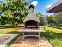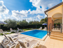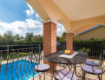 Enfamiljshus "Lara (PRC308)", med 2 våningar. I den lilla byn Begi 10 km från centrumet av Vrsar, 15 km från centrumet av Poreč, 9 km från havet, i det gröna. För privat bruk: tomt 850 m2 (inhägnad), gräsmatta och träd, pool kantig (6 x 4 m, 145 cm djup, tillgång säsongsbunden: 04.Apr. - 06.Nov.). Utedusch, terrass, utegrill (gunga), Underhållning av poolen av ägaren/trädgårdsmästaren. I huset: internetanslutning, gym, fotbollsspel, trampolin, tvättmaskin. Parkering vid huset. Affär 4 km, strand vid klippor 9 km.Interior