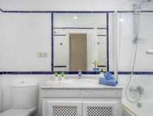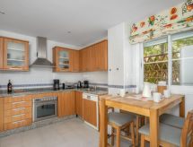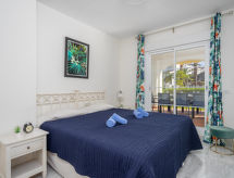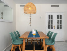 "Las Adelfas", 4-rums-lägenhet 135 m2, på bottenvåningen. Objekt passande för 4 vuxna + 4 barn. Rymlig och ljus, renoverad år 2016, komfortabelt och mysigt inredd: vardags-/matrum med digital-TV. Utgång till terrassen. 1 dubbelrum med 1 dubbelsäng (90 cm, längd 200 cm), badkar/dusch/bidé/toalett (privat). 1 barnrum med 2 x 2 våningssängar (90 cm, längd 200 cm). 1 dubbelrum med 1 dubbelsäng (2 x 90 cm, längd 200 cm). Kök (ugn, diskmaskin, 4 kokplattor - glaskeramikhäll, mikrovågsugn). Badkar/toalett, sep. Toalett. Luftkonditionering, varmluftsuppvärmning. Terrass. Terrassmöbler, utegrill. Utsikt på swimming-poolen och trädgården. Till förfogande: tvättmaskin, hög barnstol, barnsäng, hårtork. Internet (Trådlös LAN [WLAN] , gratis). Garage nr 9. Notera: lämpligt för barnfamiljer. Rökfri lägenhet. VFT/MA31919- Kännetecken för boendet