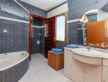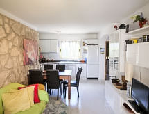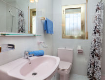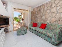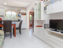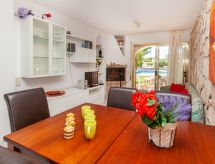 Urb. Tres Cales 4 km från L'Ametlla de Mar: Vackert, mysigt radhus "Las Palmeras", med 2 våningar. Ovanför Las 3 Calas, utanför orten, 5.5 km från centrumet av L'Ametlla de Mar, soligt läge, 3 km från havet, 3 km från stranden. För gemensamt bruk: stor, vacker, välskött trädgård med gräsmatta 2'700 m2, planteringar, pool oregelbundet formad (6 x 3 m, 80 - 190 cm djup, tillgång säsongsbunden: 01.Jan. - 31.Dec.). Barnbassäng. För privat bruk: utedusch. Parkering vid huset på tomten, allmän parkering på gatan. Livsmedelsaffär 1.3 km, stormarknad 1.3 km, restaurang 1.3 km, bar 1.3 km, järnvägsstation 5.5 km. Närbelägna sevärdheter: Parque Portaventura 48 km, parque Aquopolis 51 km, parque natura del Delta del Ebro 35 km, Tarragona 57 km, Reus 48 km, Barcelona 153 km. Notera: fordon rekommenderas. Tonårsgrupper endast på förfrågan.Interior