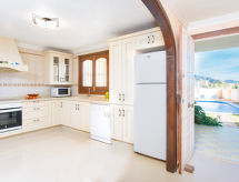 "Las Yucas", 4-rums-hus 180 m2 med 2 våningar. Komfortabelt och vackert inrett: vardags-/matrum med öppen spis, TV, digital-TV, internationella TV-kanaler och luftkonditionering. 1 rum med 1 fransk säng (135 cm, längd 190 cm), luftkonditionering. 1 rum med 2 sängar (90 cm, längd 190 cm), luftkonditionering. Dusch/toalett, sep. Toalett. Nedre våning: 1 rum med 2 sängar (90 cm, längd 190 cm), dusch/toalett och luftkonditionering. Öppet kök (ugn, diskmaskin, 4 kokplattor - glaskeramikhäll, mikrovågsugn, frys) med matbord, öppen spis och luftkonditionering. Utgång till terrassen. Trädgårdssittplats, gräsmatta. Terrassmöbler, utegrill, vilstolar. Mycket vacker vidsträckt utsikt på bergen, orten och havet. Till förfogande: tvättmaskin. Internet (Trådlös LAN [WLAN] , gratis). Lämpligt för barnfamiljer. CTC-2016072253- Utrustning