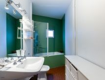 2-rums-lägenhet 54 m2 på 1. våningen. Stort vardags-/matrum med 1 bäddsoffa för 2 personer (140 cm, längd 190 cm), TV (flatscreen TV). Utgång till balkongen. 1 stort rum med 1 fransk säng (140 cm, längd 190 cm). Kök (ugn, diskmaskin, 4 kokplattor - glaskeramikhäll, vattenkokare, elektrisk kaffemaskin, Kapslar till kaffemaskin (Nespresso) extra). Badkar, sep. Toalett. Uppvärmning. Balkong, sydläge. Mycket vacker utsikt på bergen och swimming-poolen. Till förfogande: tvättmaskin. Internet (Trådlös LAN [WLAN] , extra). Parkeringsplats. Notera: rökfri lägenhet. TV bara FR. Brandvarnare.- Kännetecken för boendet