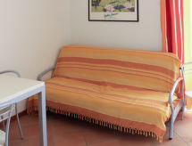 3-rums-lägenhet 60 m2 på 1. våningen. Vackert inredd: vardags-/sovrum med 1 bäddsoffa för 2 personer, matbord och sat-TV. Utgång till balkongen. 1 dubbelrum. 1 litet rum med 1 x 2 våningssängar, 1 utdragbar säng. Öppet kök (Gasspis, 4 gasflammor, frys). Dusch/toalett. Gasuppvärmning, luftkonditionering (extra). Balkong, sydvästläge, liten balkong, norrläge. Balkongmöbler, vilstolar (2). Till förfogande: tvättmaskin, barnsäng. Internet (Trådlös LAN [WLAN] , gratis). Garage (1 Bil). Notera: rökfri lägenhet. CIR:M0230430580- Kännetecken för boendet