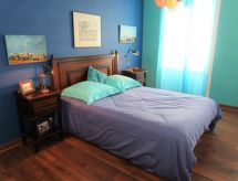 "Le Corsaire", 3-rums-lägenhet 72 m2 på 1. våningen. Komfortabelt och mysigt inredd: vardags-/matrum med matbord, TV och stereoanläggning. Utgång till terrassen. 1 rum med 1 fransk säng (180 cm). 1 rum med 1 fransk säng. Öppet kök (ugn, diskmaskin, 4 Induktionshäll, brödrost, vattenkokare, mikrovågsugn, elektrisk kaffemaskin). Badkar/toalett med hörnbadkar. Eluppvärmning. Parkettgolv. Terrass 50 m2, sydvästläge. Terrassmöbler, vilstolar (2). Till förfogande: tvättmaskin, strykjärn. Internet (Trådlös LAN [WLAN] , gratis). Notera: kylskåp utan frysfack, rökfritt hus. Ingen hiss.- Utrustning
