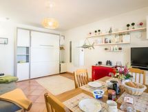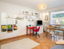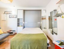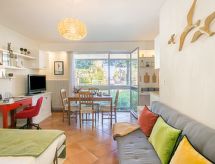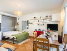 "Le Courtoisville", 1-rums-studio 27 m2, på bottenvåningen. Rymlig och ljus, komfortabelt och smakfullt inredd: stort vardags-/sovrum med 1 skåpsäng (140 cm, längd 190 cm), TV och flatscreen TV. Litet, öppet kök (4 kokplattor, ugn, brödrost, vattenkokare, mikrovågsugn, elektrisk kaffemaskin) med matbord. Dusch/toalett. Gasuppvärmning. Begränsad utsikt på havet. Till förfogande: Internet (Trådlös LAN [WLAN] , gratis). Parkeringsplats nr 246. 352821A0064- Kännetecken för boendet