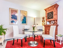 "Le Della", 2-rums-lägenhet 50 m2 på 1. våningen. Rymlig och ljus, mycket vackert inredd: stort vardags-/matrum med panoramafönster med 1 bäddsoffa (140 cm, längd 190 cm), TV (flatscreen TV). Utgång till terrassen. 1 rum med 1 dubbelsäng (2 x 90 cm, längd 190 cm). Utgång till terrassen. Öppet kök (ugn, diskmaskin, 4 Induktionshäll, brödrost, vattenkokare, mikrovågsugn, frys, elektrisk kaffemaskin). Utgång till terrassen. Badkar, dusch, sep. Toalett. Uppvärmning. Stor terrass 16 m2. Terrassmöbler, vilstolar. Utsikt på landskapet. Till förfogande: tvättmaskin, strykjärn, hårtork. Internet (Trådlös LAN [WLAN] , gratis). Garage nr 3 (1 Bil). Notera: rökfri lägenhet, parkeringsplats endast för små bilar. Brandvarnare. 06088009689NH- Kännetecken för boendet