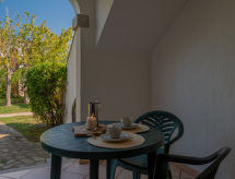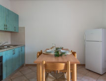"Le Dimore di Budoni", 2-rums-lägenhet 33 m2. Praktiskt inredd: vardags-/matrum med matbord och TV. 1 dubbelrum. Öppet kök (ugn, Gasspis, 4 gasflammor, mikrovågsugn, frys). Dusch/bidé/toalett. Luftkonditionering. Balkong eller trädgårdssittplats. Terrassmöbler. Till förfogande: tvättmaskin, strykjärn, myggnät, barnsäng (extra), hårtork. Parkeringsplats (1 Bil). 1 litet husdjur/hund tillåtet.- Kännetecken för boendet