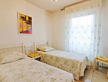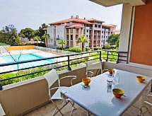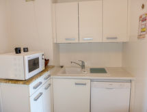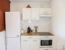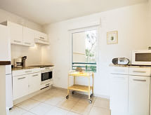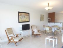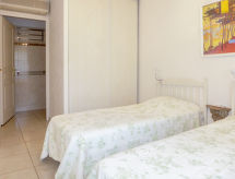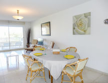 3-rums-lägenhet 74 m2 på 1. våningen. Komfortabelt och vackert inredd: vardags-/matrum med panoramafönster med 1 bäddsoffa för 2 personer (1 x 120 cm, längd 190 cm), TV (flatscreen TV), radio och elektrisk fönsterlucka. Utgång till terrassen. 1 rum med 1 fransk säng (1 x 160 cm, längd 190 cm), luftkonditionering och elektrisk fönsterlucka. 1 rum med 2 sängar (80 cm, längd 190 cm), dusch, luftkonditionering och elektrisk fönsterlucka. Öppet kök (ugn, diskmaskin, 4 Induktionshäll, brödrost, vattenkokare, mikrovågsugn, frys, elektrisk kaffemaskin, Kapslar till kaffemaskin (nespresso) extra). Badkar, sep. Toalett. Terrass 12 m2, sydostläge. Terrassmöbler, vilstolar (2). Utsikt på swimming-poolen och trädgården. Till förfogande: tvättmaskin, strykjärn. Internet (Trådlös LAN [WLAN] , extra). Garage nr 71, höjd 190 cm, bredd 230 cm. Notera: lämpligt för barnfamiljer. TV bara FR. Brandvarnare.- Kännetecken för boendet
