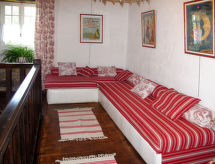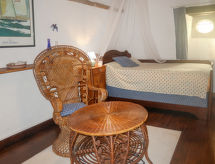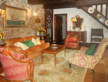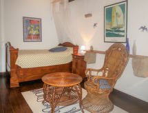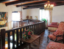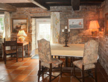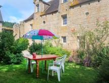 "Le Manoir", 3-rums-hus 80 m2 med 2 våningar. Objekt passande för 4 vuxna + 1 barn. Rustikt och med mycket trä inrett: vardags-/matrum med matbord. Utgång till terrassen. Kök (ugn, 4 gasflammor, brödrost, vattenkokare, mikrovågsugn, frys, elektrisk kaffemaskin). Utgång till trädgården. Badkar, sep. Toalett, dubbelt handfat. Övre våning: öppet galleri med 1 säng. 1 rum med 1 fransk säng (140 cm, längd 190 cm). 1 rum, utan fönster med 2 sängar (120 cm, längd 190 cm). Parkettgolv. Terrass, trädgård 400 m2. Terrassmöbler, utegrill (flyttbar), vilstolar (2). Till förfogande: hög barnstol, barnsäng. Notera: rökfritt hus. Brandvarnare, brandsläckare. Flexibel fördelning av sängar: Antalet tillgängliga sovplatser är större än det maximala antalet personer, som dock inte får överskridas.- Utrustning