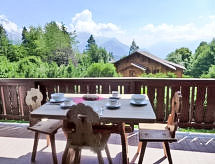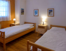 "Le Mont Blanc 8", 2-rums-lägenhet 45 m2 på 1. våningen, sydläge. Enkelt och praktiskt inredd: vardags-/sovrum med 1 bäddsoffa för 2 personer (140 cm, längd 200 cm), öppen spis, matbord och TV (flatscreen TV). Utgång till balkongen. 1 rum med 2 sängar. Litet kök (4 kokplattor, ugn, diskmaskin). Badkar/bidé/toalett. Balkong 10 m2, sydläge. Vacker utsikt på bergen och landskapet. Till förfogande: Internet (Trådlös LAN [WLAN] , gratis). Notera: kylskåp utan frysfack. 1 husdjur/hund tillåtet.- Utrustning