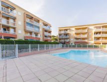 1-rums-lägenhet 27 m2 på 1. våningen. Vardags-/matrum med 1 bäddsoffa för 2 personer (1 x 125 cm), TV (flatscreen TV), fläkt. Utgång till terrassen. Alkov med 1 x 2 våningssängar (80 cm), fläkt. Kokvrå (4 kokplattor, ugn, brödrost, vattenkokare, mikrovågsugn, frys, elektrisk kaffemaskin). Badkar/toalett. Eluppvärmning. Terrass 6 m2 täckt, sydostläge. Terrassmöbler, vilstolar (1). Till förfogande: Internet (Trådlös LAN [WLAN] , extra). Parkeringsplats nr 4. Notera: ej lämpligt för barn under 6 år lägenhet mot gatan. Rökfri lägenhet. TV bara FR. Brandvarnare.- Kännetecken för boendet
