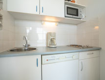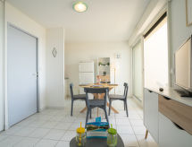 Residens "Le Sunset/Cap Sud". I ortsdelen Rochelongue, 230 m från havet, 230 m från stranden. För gemensamt bruk: trädgård (inhägnad), pool (12 x 6 m, 40 - 175 cm djup, tillgång säsongsbunden: 01.Jul. - 31.Aug.). Barnlekplats. I anläggningen: hiss. Allmän parkering 50 m på gatan. Affär, livsmedelsaffär, restaurang 350 m, bageri 110 m, sandstrand "Rochelongue" 230 m. Sporthamn 3 km, golfbana (27 hål) 1.5 km, tennis 3 km, ridstall 1.4 km. Närbelägna sevärdheter: Aqualand 1.7 km, Ile des Loisirs 1.9 km, Musée de l'Ephèbe 3 km, Casino 2.5 km, Luna Park 2.4 km, Accrobranche 4.7 km.Interior
