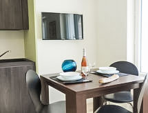 2-rums-lägenhet 28 m2 på 1. våningen. Fullständigt renoverad år 2017, komfortabelt och vackert inredd: vardags-/matrum med TV (flatscreen TV). 1 rum med 1 fransk säng (1 x 140 cm, längd 190 cm). Kokvrå (ugn, diskmaskin, 2 Induktionshäll, elektrisk kaffemaskin). Dusch/toalett. Vacker utsikt på havet. Till förfogande: strykjärn, hårtork. Internet (Trådlös LAN [WLAN] , gratis). Notera: rökfri lägenhet. Brandvarnare. 352880004785E- Utrustning